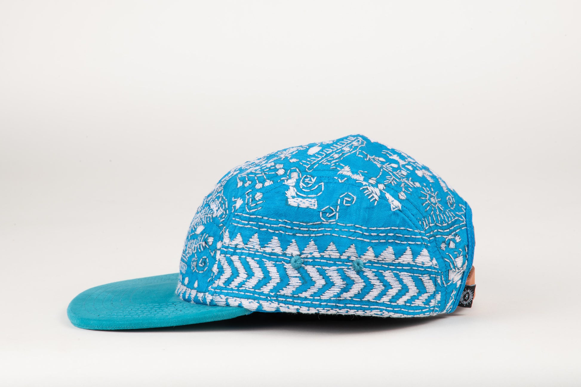 This hat is upcycled from an Indian sari—a woven fabric traditionally worn by women as a symbol of femininity, dignity, and grace.