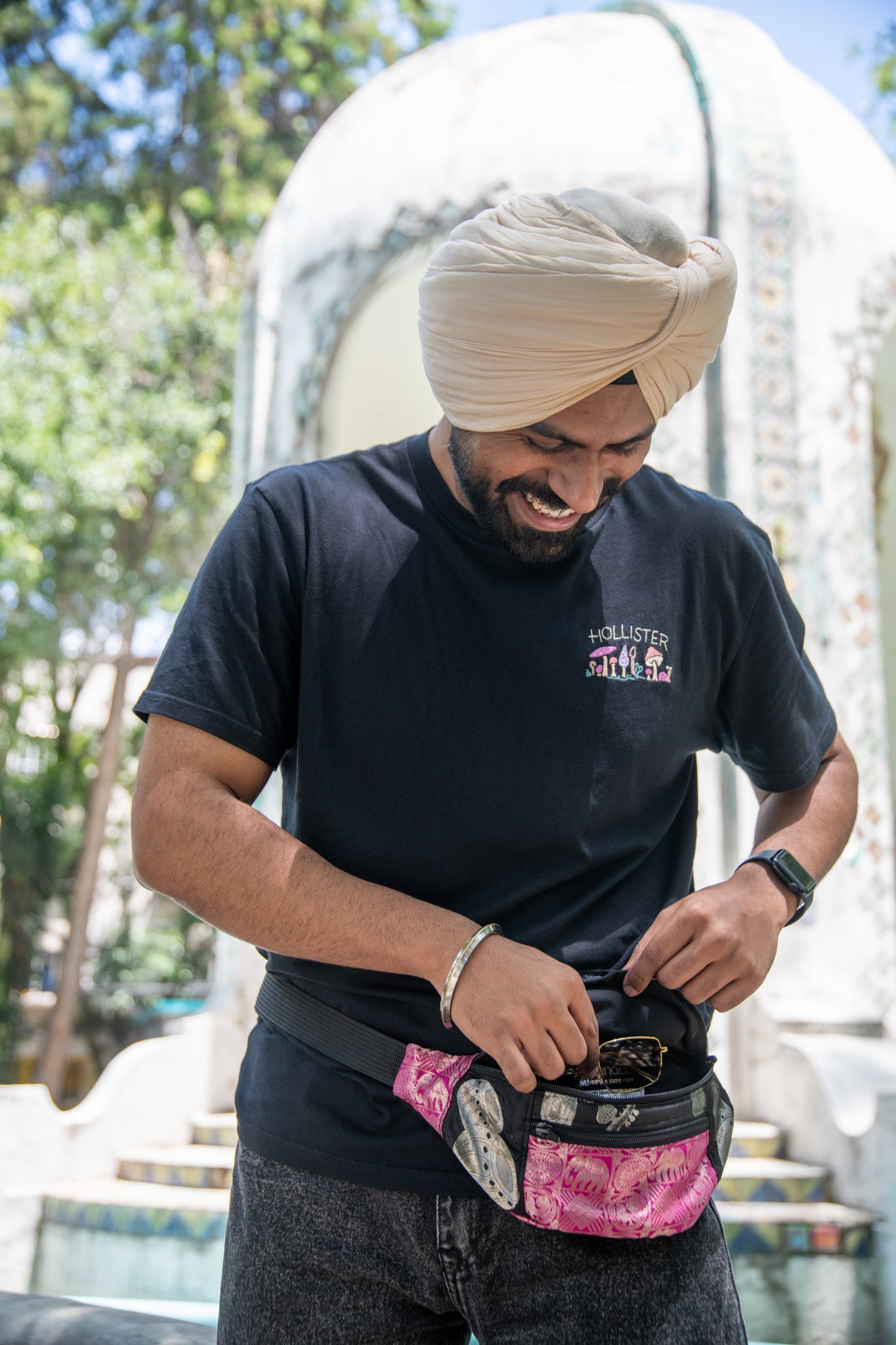 The sari this fanny pack is made from was gifted to us by a dear family friend who is generous, compassionate, and has an eclectic sense of style.