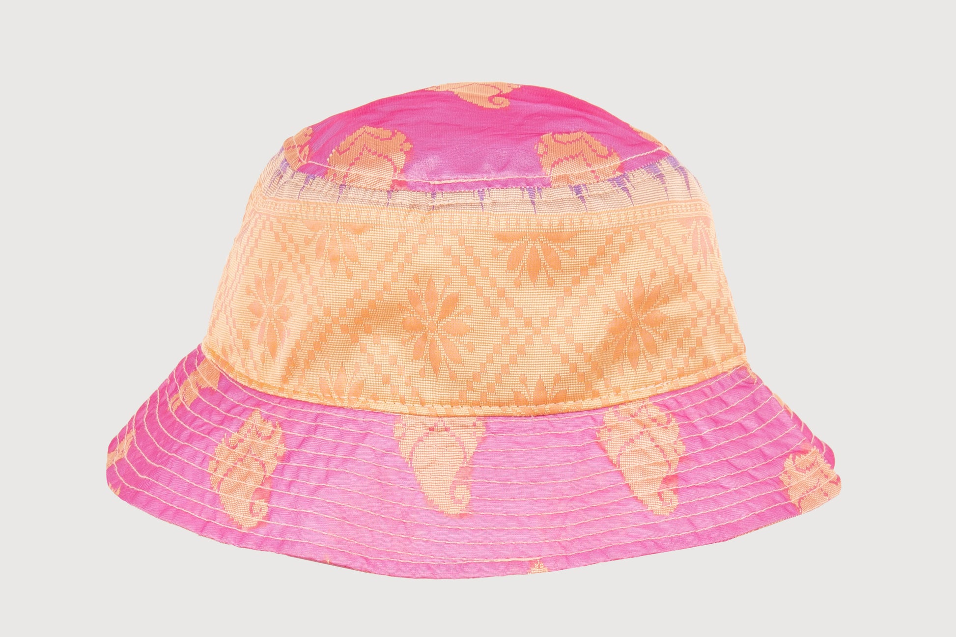 This hat is upcycled from an Indian sari—a woven fabric traditionally worn by women as a symbol of femininity, dignity, and grace.